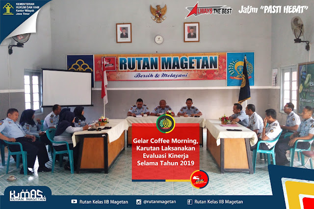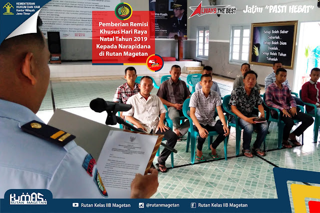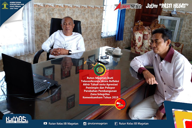 MAGETAN – Pada hari ini (27/12/2019), berlokasi di Graha Pengayoman Kementerian Hukum dan HAM diadakan acara Refleksi Akhir Tahun serta Apresiasi Pemimpin dan Pelopor Perubahan Pembangunan Zona Integritas Kementerian Hukum dan HAM Tahun 2019 yang disiarkan langsung dengan teleconference melalui aplikasi Zoom, diikuti oleh jajaran Kemenkumham RI di seluruh Indonesia tak terkecuali Rutan Kelas IIB Magetan.
