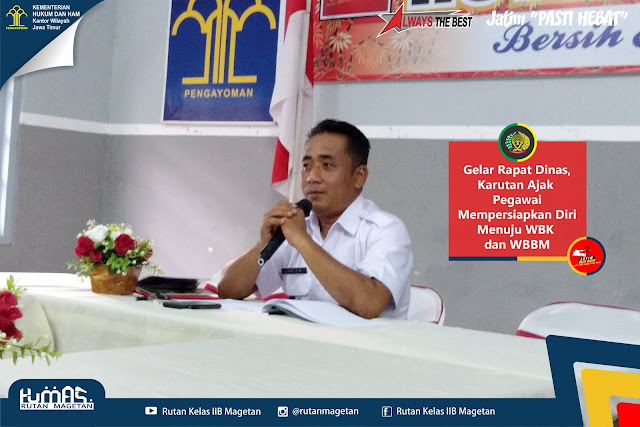 MAGETAN – Sore ini (29/01/2020), seluruh Staff Rutan Magetan berkumpul di Aula Rutan untuk mengikuti rapat dinas yang dipimpin langsung oleh Karutan Magetan, Bapak Eries Sugianto. Karutan sengaja mengumpulkan seluruh Staff untuk membahas segala persiapan untuk menuju WBK dan WBBM.