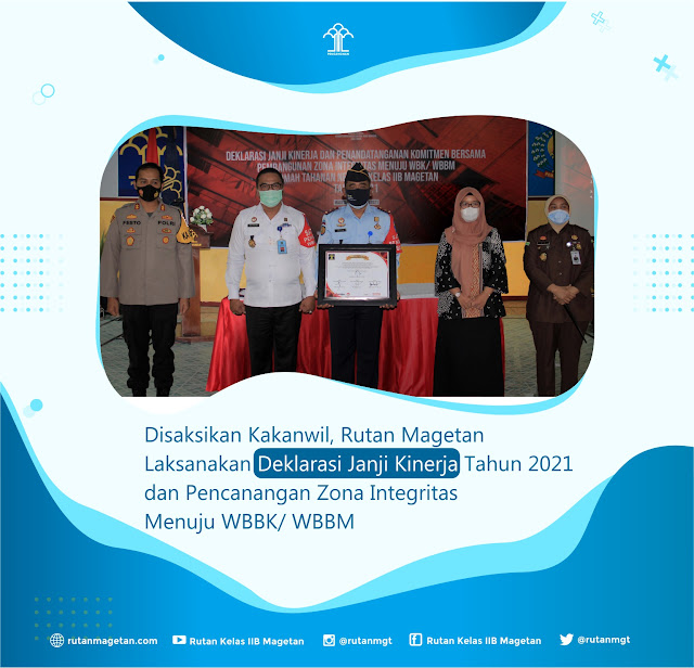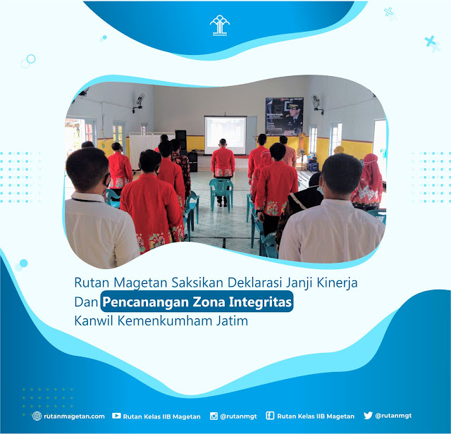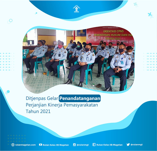 MAGETAN – Suasana pandemi tak menyurutkan langkah jajaran Pemasyarakatan untuk terus meningkatkan kualitas kinerja. Dalam rangka pelaksanaan Peraturan Presiden RI Nomor 29 Tahun 2014 tentang Sistem Akuntabilitas Kinerja Instansi Pemerintah dan Peraturan Menteri PAN dan RB Nomor 53 Tahun 2014 tentang Petunjuk Teknis Perjanjian Kinerja, Pelaporan Kinerja, Tata Cara Reviu Atas Laporan Kinerja Pemerintah, siang ini (02/02/2021) Direktorat Jenderal Pemasyarakatan menggelar acara Penandatanganan Perjanjian Kinerja Pemasyarakatan Tahun 2021 yang direlay melalui aplikasi zoom.