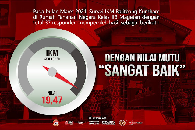 Kami mengucapkan terima kasih kepada masyarakat pengguna layanan yang telah berpartisipasi serta memberikan predikat “Sangat Baik” terhadap layanan publik yang diberikan Rumah Tahanan Negara Kelas IIB Magetan dalam Survei Indeks Kepuasan Masyarakat Bulan Maret.