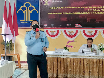 Di materi terakhir, Penyuluh Hukum Madya Kanwil Kumham Jatim meminta kepada WBP yang hadir agar senantiasa berperilaku positif dalam menjalani hukumannya serta selalu taat kepada peraturan yang berlaku. (Humas Rutan Magetan)