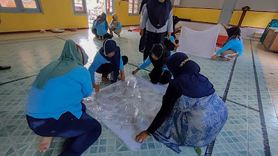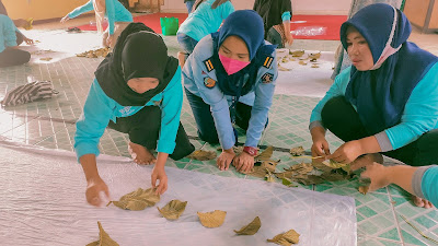 Usai memberikan materi, Rini membimbing Warga Binaan untuk mempraktekkan secara langsung proses pembuatan batik ecoprint, diawali dengan mencuci kain dengan bahan TOR. kain yang basah lantas diletakkan diatas lembaran plastik, kemudian daun yang dipakai disusun di atas kain sesuai dengan pola yang diinginkan.