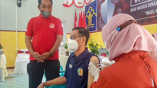 Usai suntik, WBP diobservasi selama 30 menit. Selanjutnya WBP bisa mengambil kartu vaksinasi covid-19 yang berisi riwayat pemberian vaksin Ke Petugas. (Humas Rutan Magetan)