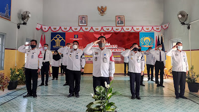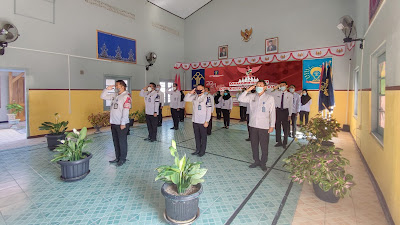 Berlangsung tepat pukul 08.00 WIB Karutan memimpin jajarannya untuk berkumpul di aula mengikuti jalannya upacara. Adapun pegawai yang libur, tetap mengikuti dari tempat tinggalnya masing-masing. (Humas Rutan Magetan)