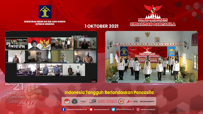MAGETAN – Hari Kesaktian Pancasila selalu diperingati Setiap tanggal 1 Oktober, yang dimaksudkan untuk mengenang kembali sejarah dalam mempertahankan ideologi bangsa. Sebagai wujud penghormatan terhadap jasa para Pahlawan Revolusi, pagi ini (1/10/2021) seluruh ASN Rutan Magetan mengikuti Upacara Hari Kesaktian Pancasila secara live streaming.